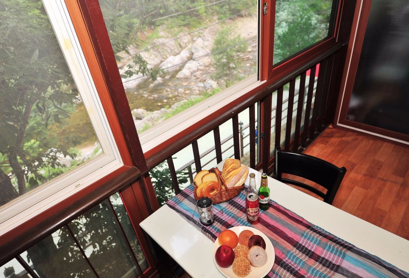 - ▷ 법수치계곡 쪽 데크에 야외 바비큐장이 자리 잡고 있습니다.