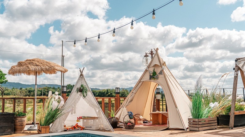- ▷ 숯+그릴 요금 (2층 객실은 우천 시 가스그릴만 사용 가능): 2인 기준 20,000원, 6인 기준 40,000원, 추가 시 5,000원