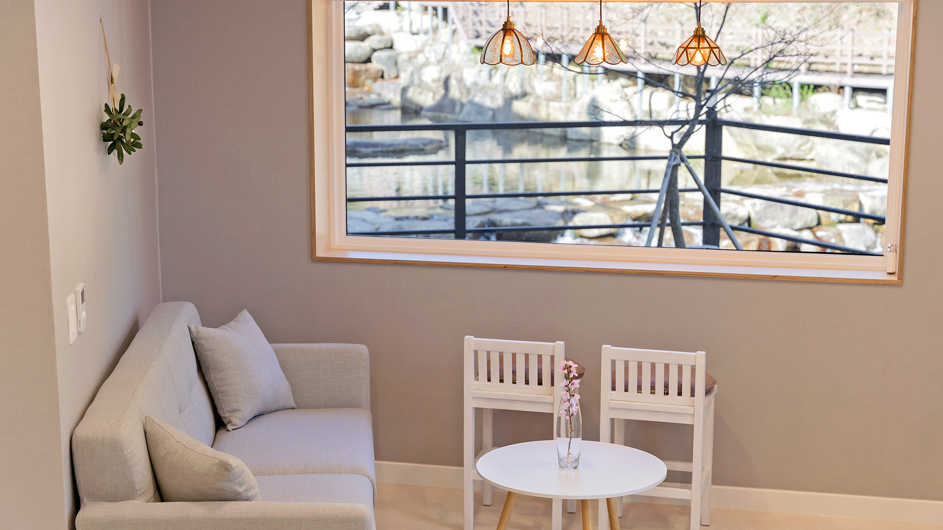 - 펜션 앞 계곡을 따라 힐링 데크로드가 있어 수변 경치와 산책을 즐길 수 있습니다