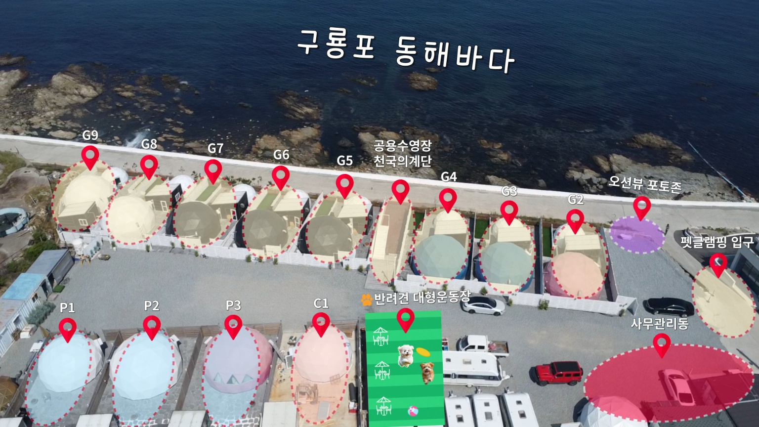 - 전 객실 돔형 개별바베큐장, 오션뷰 욕실, 개별 강아지 놀이터 완비