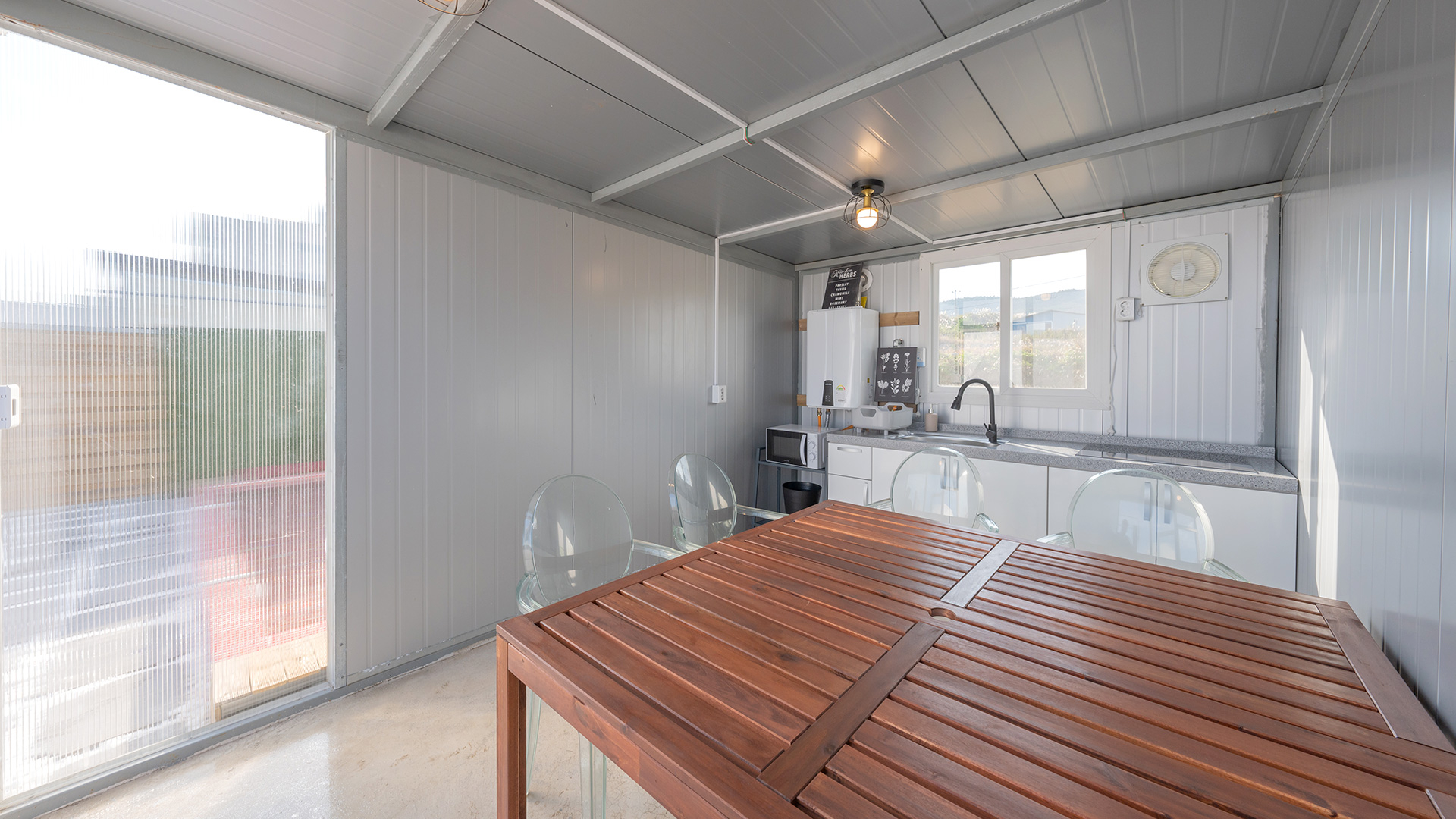 - 소화기, 일산화탄소 감지기, 연기 감지기 구비