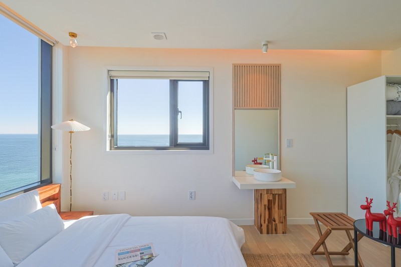 - 아침에 눈을 뜨면 바로 창으로 해돋이와 바다가 보이는 침실,
