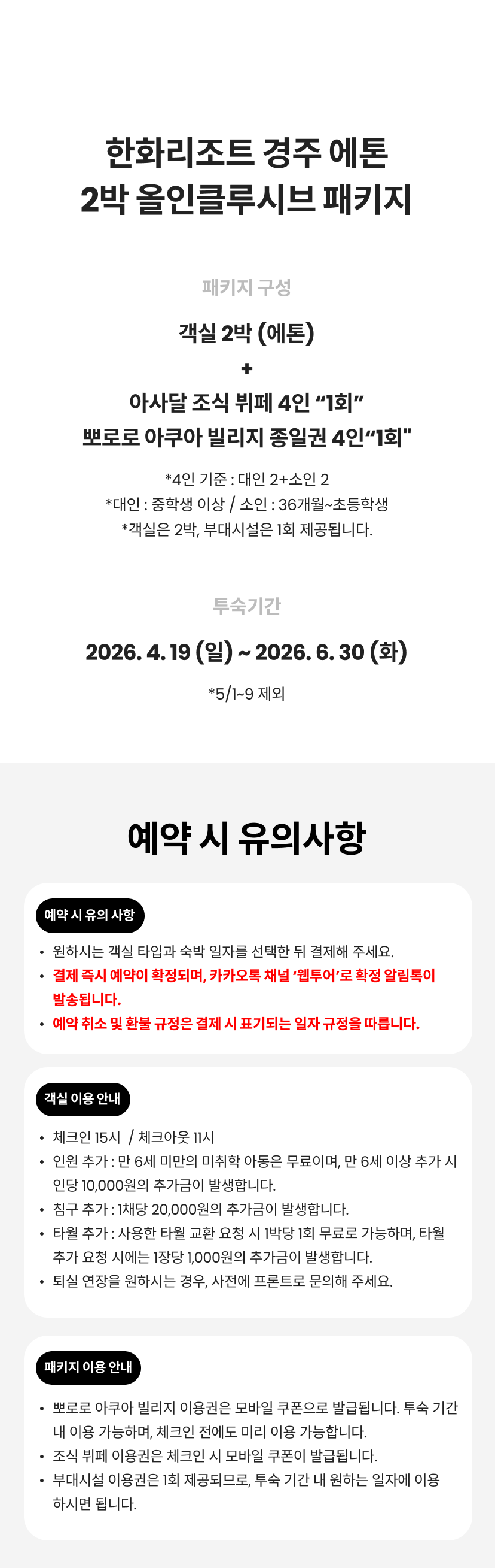 한화리조트는 전국에 여러 지점이 위치한 대한민국 대표 패밀리 리조트로, 널찍한 객실과 가족 여행을 위한 다양한 부대시설을 제공합니다.