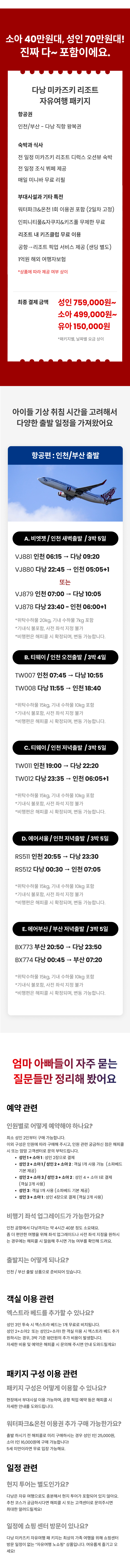 D. 다낭 미카즈키 자유여행 인천 3박5일 저녁출발 에어서울