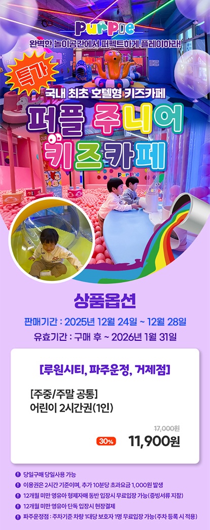 [전국] 특가★퍼플주니어 키즈카페 3개지점 이용권