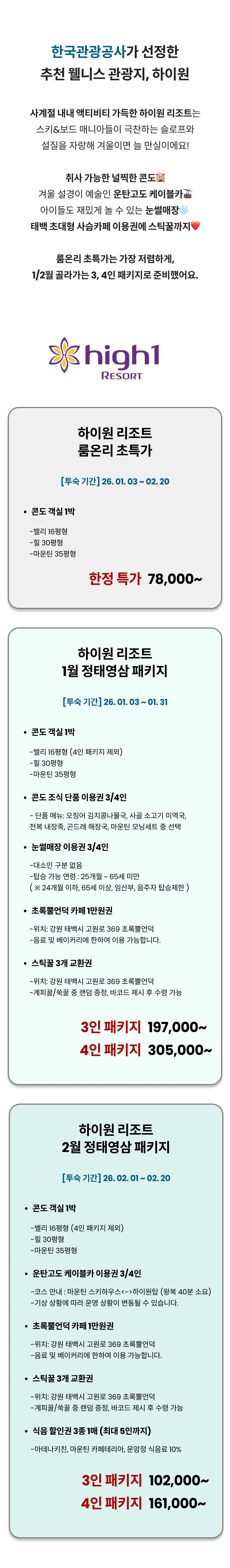 정선 하이원 리조트 - 맘맘 쇼케이스겨울 극성수기 예약 OPEN