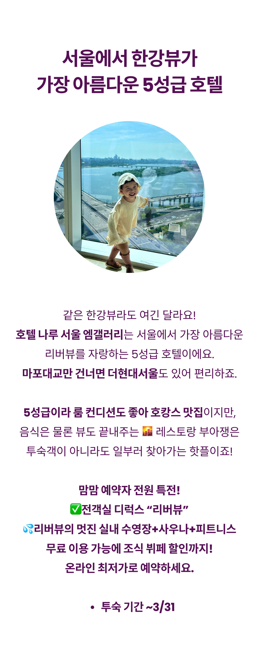 호텔나루 엠갤러리 - 맘맘 쇼케이스서울 5성급 리버뷰 호캉스 최저가