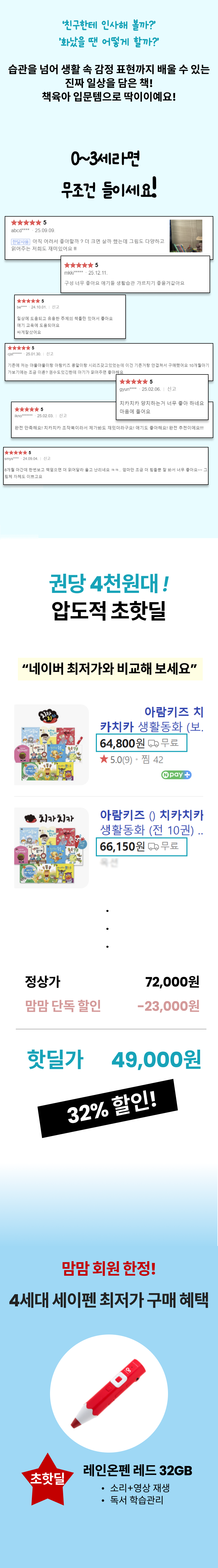 [아람키즈] 치카치카생활동화 + 레인온펜32G(레드) 세이펜포함
