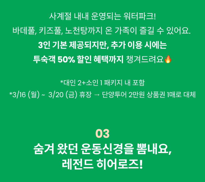 소노벨 단양 WEST 패밀리 패키지 (객실 1박+조식3인+오션플레이3인+레전드히어로즈)