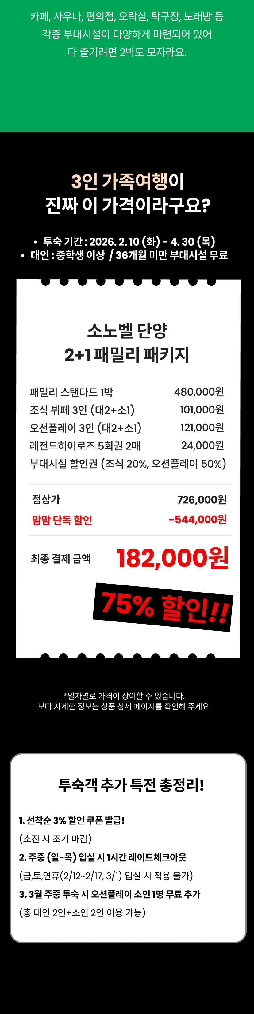 [앵콜] 비발디파크 소노캄 얼리버드 패키지(객실+오션3인+할인권)