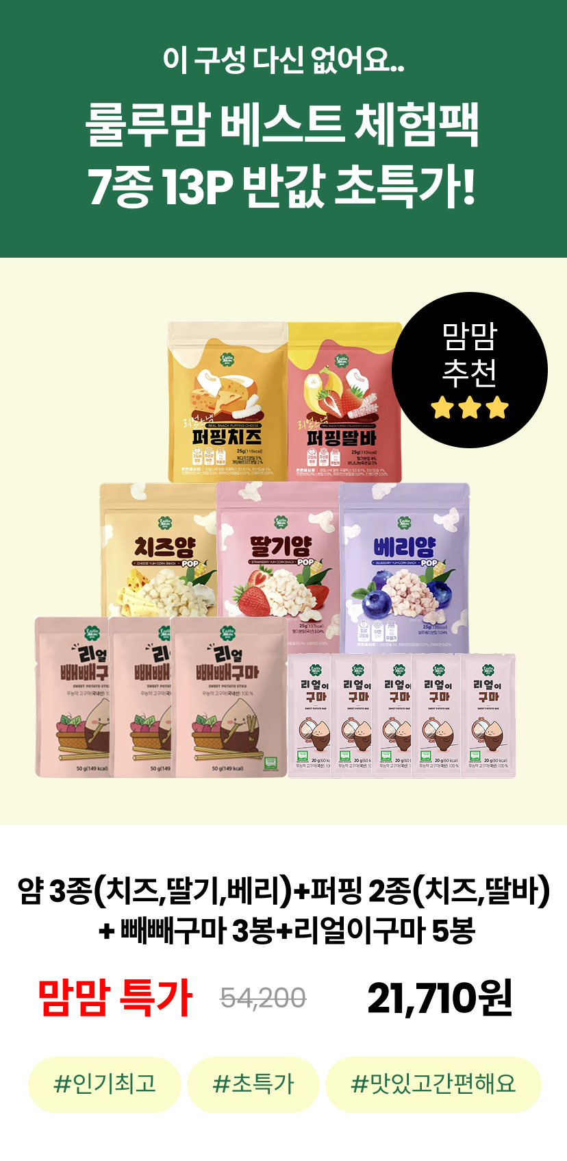 [룰루맘] 베스트 체험팩(빼빼구마 3봉+리얼이구마 5봉+얌 3종+퍼핑 2종)