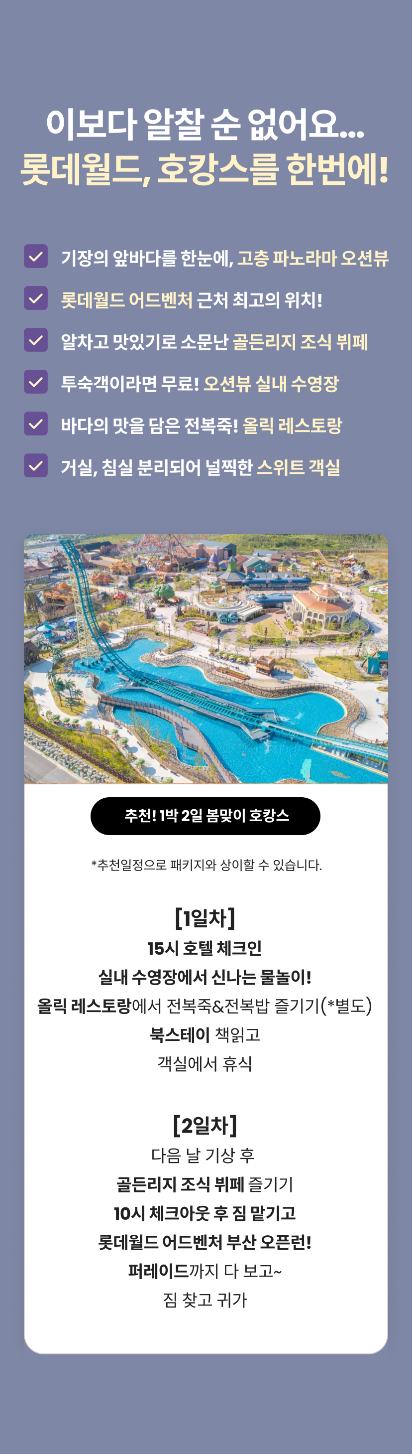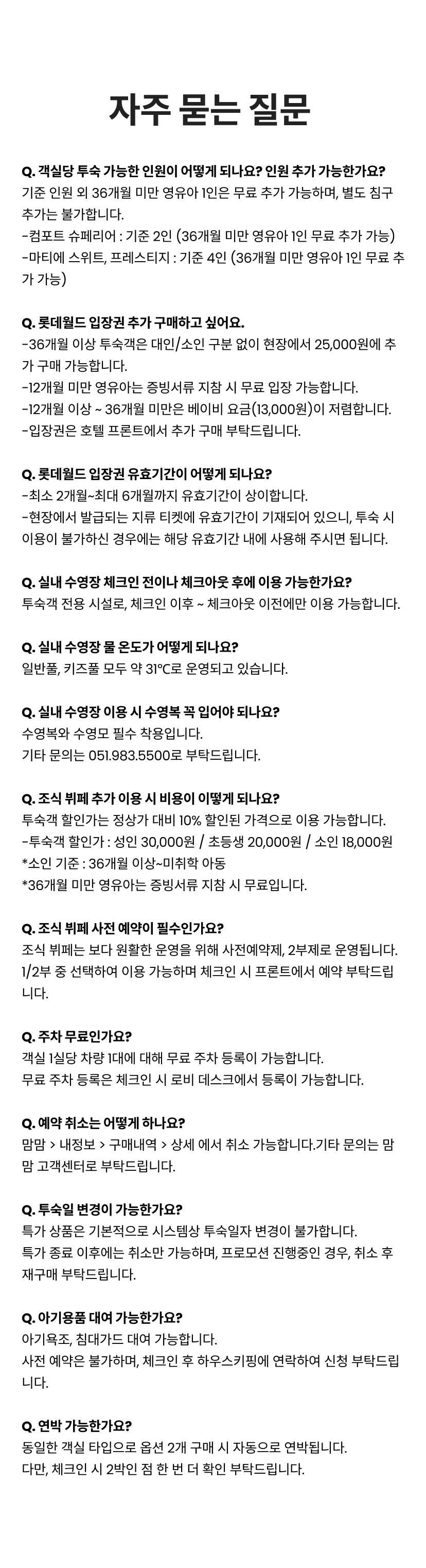 롯데호텔 부산 수영장 패키지 (디럭스룸 1박+수영장 2/4인)