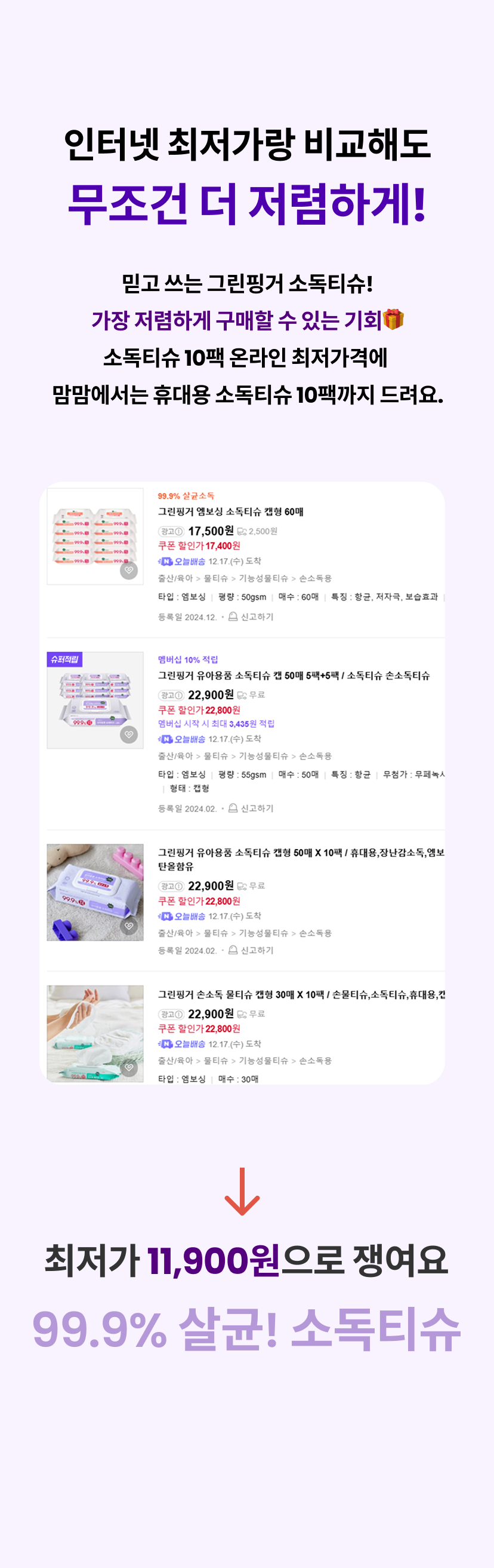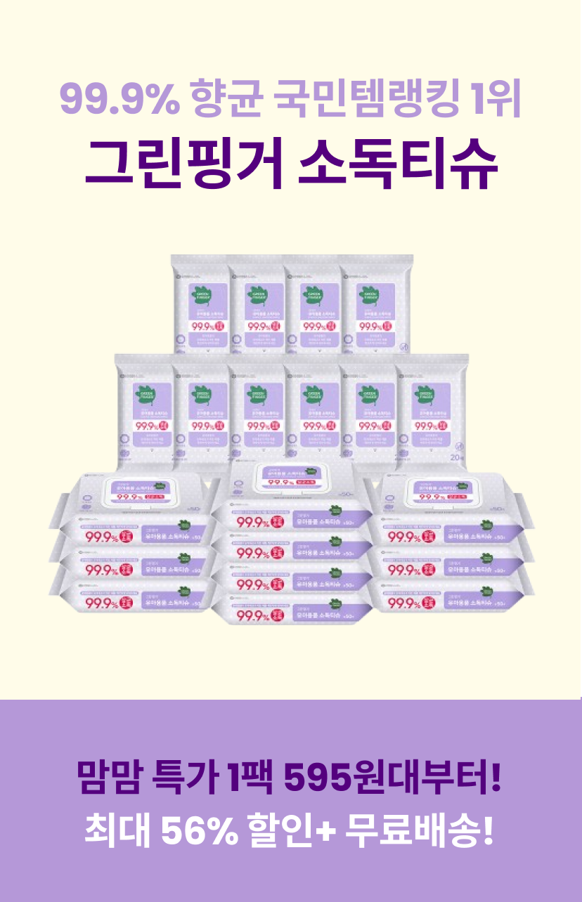 최저가 미리미리 쟁여두세요!그린핑거[그린핑거] 유아용품 소독티슈 캡형 50매X10팩+휴대용 20매X10팩쿠폰할인가53% 22,900원 쿠폰20% 쿠폰 적용됨무료배송그린핑거[그린핑거] 유아용품 소독티슈 캡형 50매X10팩쿠폰할인가56% 15,900원 쿠폰20% 쿠폰 적용됨무료배송그린핑거[그린핑거] 휴대용 유아용품 소독티슈 20매X20팩쿠폰할인가47% 14,800원 쿠폰20% 쿠폰 적용됨무료배송그린핑거[그린핑거] 엠보싱 소독티슈 캡형 60매X10팩쿠폰할인가32% 14,900원 쿠폰20% 쿠폰 적용됨무료배송그린핑거[그린핑거] 손소독 물티슈 캡형 30매X10팩쿠폰할인가49% 17,900원 쿠폰20% 쿠폰 적용됨무료배송그린핑거[그린핑거] 휴대용 손소독 물티슈 20매X10팩쿠폰할인가45% 12,900원 쿠폰20% 쿠폰 적용됨무료배송그린핑거[그린핑거] 마이키즈 비데물티슈 캡형 42매X9팩쿠폰할인가47% 12,500원 쿠폰20% 쿠폰 적용됨무료배송그린핑거[그린핑거] 오리지널 물티슈 마이멜로디&쿠로미 휴대용20매X20팩쿠폰할인가45% 11,900원 쿠폰20% 쿠폰 적용됨무료배송