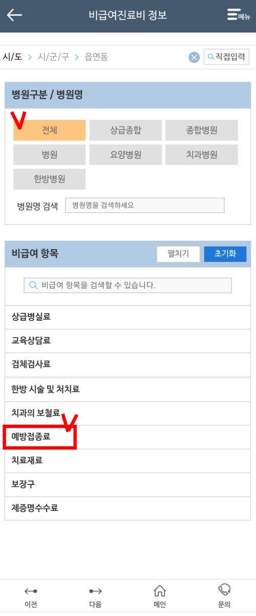 예방접종 비용 비교(비급여 비용만 가능)