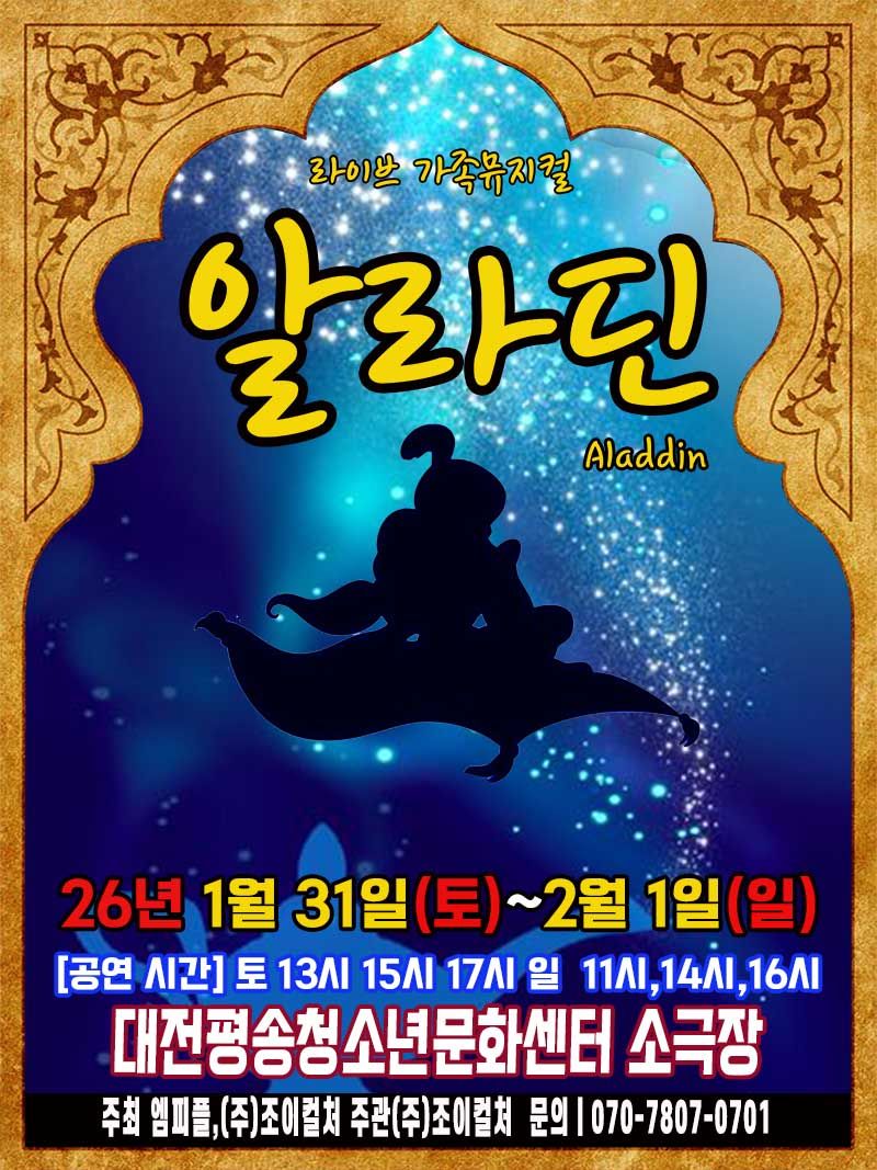 <뮤지컬> 알라딘 - 대전(26/01/31~26/02/01) - 대전 서구에서 아이와 갈 곳 추천 - 맘맘